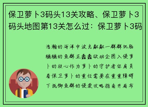 保卫萝卜3码头13关攻略、保卫萝卜3码头地图第13关怎么过:保卫萝卜3码头13关:轻松抵御鱼群入侵